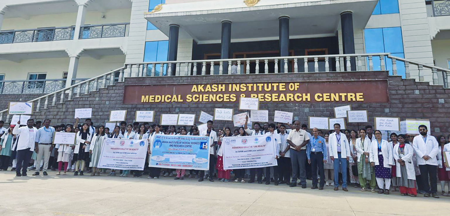 The Department of Community Medicine, Akash Institute of Medical Sciences & Research Centre, organized an Awareness Rally on “One Health” — an IAPSM and ICMR joint initiative — under the theme “One World, One Health – United for Human, Animal, and Environmental Well-being.”