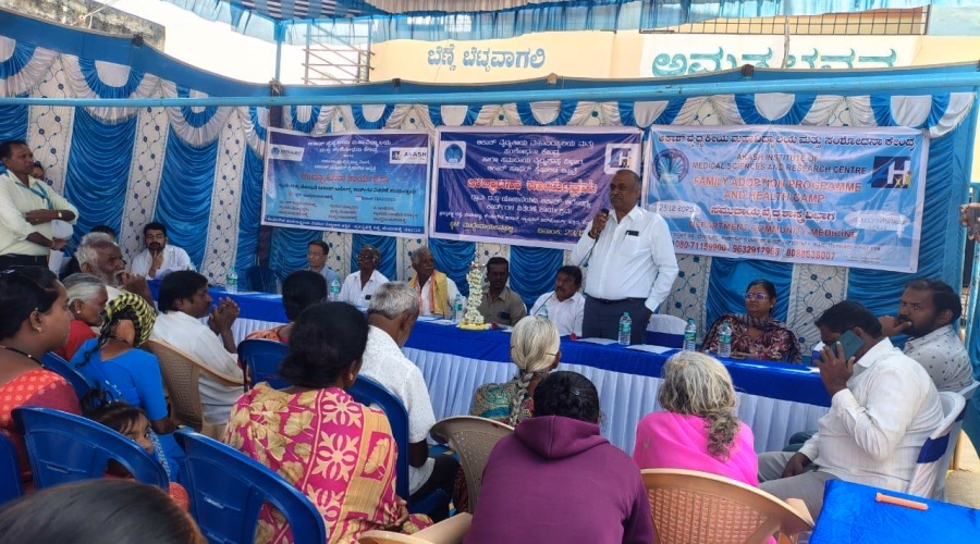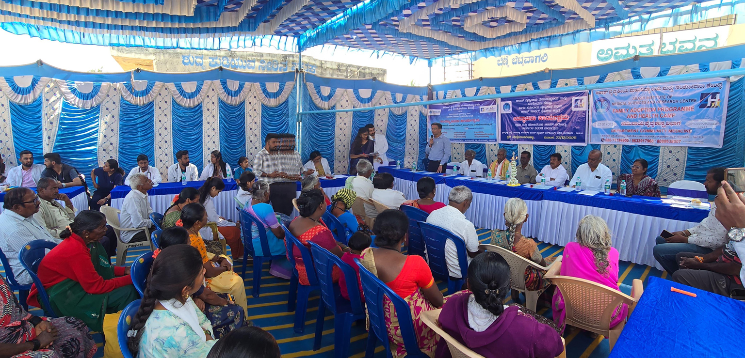 Dept. of Community Medicine, AIMS & RC, in association with Akash Hospital, organized a Village Adoption Program and formally adopted Muddanayakanhalli Village.